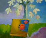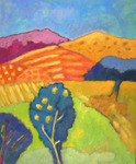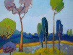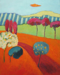 'World of colours'. Hedendaags kleurrijk landschap. Fauvistisch en figuratief geschilderd in acryl en olieverf op doek. …"ik schilder de stille dingen om mij heen"…